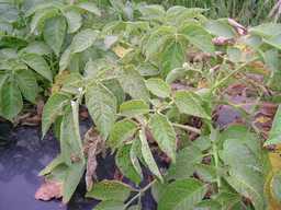 | 一番花が咲いたナス(千両2号) | こちらはジャガイモ(アンデス赤) |