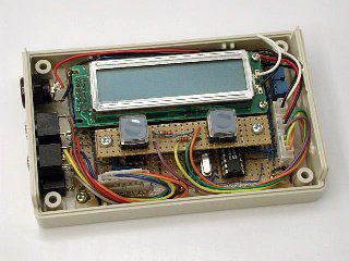 そして、回路とプログラムがほぼフィックスした時点で、こうした回路用のプラスチックケースに収まるように、基板を作り直しました。ケースはタカチ製のSS125というこれまたポピュラーなものを使用しています。これで、アストロフォトタイマ2初号機(試作機)の完成です。
