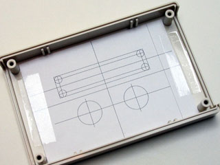 切り抜いて、ケースに貼り付けて、穴のセンターにキリなどでしるしを付けて穴あけすると簡単です。
