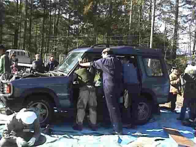 ランドローバー50周年を記念して事故車の解体が行われた。