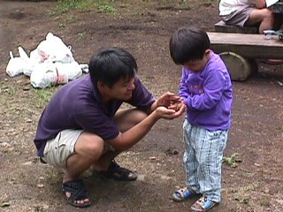 (金さん) カエル取りの二人、子供(二人とも)は無邪気です。 (USU) 一人は随分と大きな子供だなあ・・。 |
