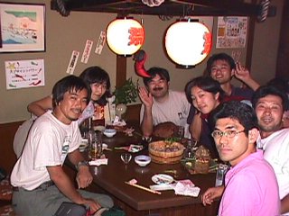 | (金さん) 広島酒ミ 右から二人目の紫の服を着た人が広島から合流のTさんです。 (USU) 旅先で出会うというのも良いものですね。 何か地物の酒や肴はありましたか? おっと、また出るところだった・・良いなあ・・しまった! |