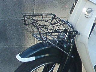 | 河原でのショット | 現在の前カゴです。小さいけどなかなか使えます コンパクトでハンドリングへの影響が少ないです。 |