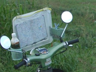 2001.1 新作のマップスタンド兼用のスケルトンスクリーンです。 スクリーン内側にクリップで地図が留められるようになっています。 前のは小さくて冬場は寒いので、大きいのを激安で作る方法を探していたら、これに行き着きました。(100円ショップのプラ製品コーナーで調達) サイドのリブ部分で止めているため、ステーを曲げ加工する必要が少ないので、だいぶ製作が楽です。 色が不透明なので視界に影響することが心配だと思いますが、視界より下方に位置するため、走行上はまったく問題ありません。 (私の場合、車体前方1mの路面が見えます) カブのハンドルって意外に低いのですよね・・・。 あまり手前にしない理由は、防風性能を上げるためと、近すぎて鬱陶しいからです(^^; ●使用例 ![]() |