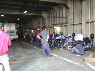 デッキ開放と同時に喜び勇んでバイクの元へ向かったのだが、なかなか降船が始まらず。