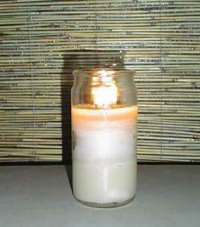 材料 ・ワンカップ酒のコップ または、のり佃煮等のフタ付きビン。高さは5cm〜10cmくらいがいい。 ・ろうそく。10号以上の太いやつと、何でもいいからそこそこ細いやつ、各1箱 作り方&使い方 ・コップの中に太いろうそくを立てる。 ・ろうそくを折って芯を抜き、コップの中に詰め込む。 高さはコップ一杯になってもよい。 ・太いろうそくに火をつける すると、周囲のロウが溶けてすき間を埋めるので高さが低くなる。 ・燃焼持続時間は、使ったろうそくの本数を目安に予想する 何てことはない、コップにろうそくを入れて火をつけるだけです(^^; どこでも手に入る、ふつうのろうそくが使えるので、かなりコストパフォーマンスが高いです。 チャッカマン等で火をつけないとやけどします。 |