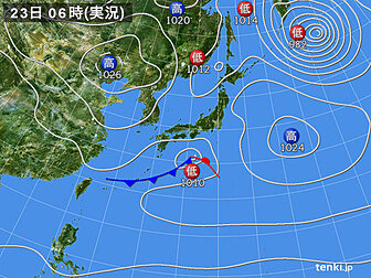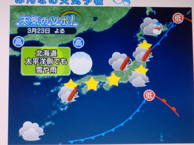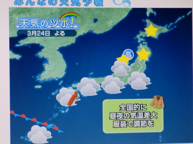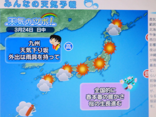 24日は本州付近は高気圧に覆われますが、夜は東シナ海に前線がのびてくるでしょう。九州は午前中は晴れますが、午後は雲が増えて、夜になると雨の降る所がありそうです。中国地方や四国から東北は、各地で日差しが届くでしょう。北海道は明け方まで、雪や雨の降る所がありますが、日中は晴れる見込みです。沖縄はスッキリしない天気でしょう。最高気温は平年並みか高くなりそうです。