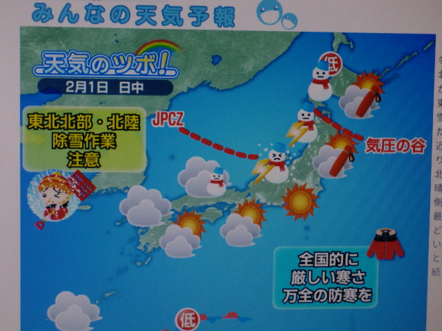 1日は、北日本に強い寒気が流れ込むでしょう。北海道と東北は、日本海側を中心に、雪の降り方が強まる見通しです。更なる大雪の恐れがあるため、引き続き、交通の乱れや雪崩に警戒してください。関東から九州は、太平洋側を中心に日が差すでしょう。標高の高い地域や、山陰、近畿北部は雲が多く、雪雲が流れ込む所がありそうです。沖縄は一日を通して雲に覆われる見通しです。